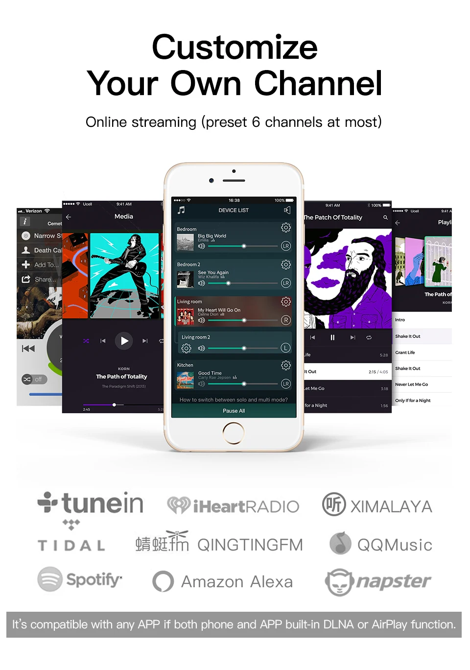 -Exclusive GGMM App, allow easy quick operation by guiding interface, need support airplay/DLAN